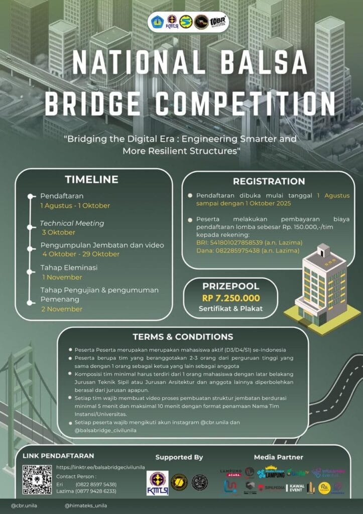 Himpunan Mahasiswa Teknik Sipil Universitas Udayana proudly present KOMPETISI RANCANG BANGUN 2022 dengan tema “INOVATIVE SOLUTION TO ACHIVE OPTIMAL USE OF ECO FRIENDLY DEVELOPMENT”